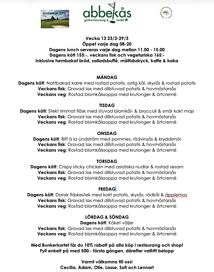 Dagens lunch serveras varje dag mellan 11.00 – 15.00
